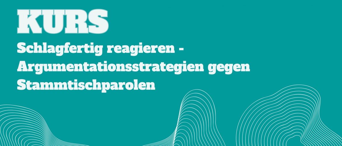 In diesem Kurs können sich die Teilnehmenden Wissen über Vorurteile, Stammtischparolen und dahinterliegende Mechanismen aneignen. Ein Austausch über Hürden, Ängste und Erwartungen leite über zur gemeinsamen Erarbeitung von Techniken und Strategien, um schlagfertig Parolen zu kontern. Gleichzeitig werden die Teilnehmenden dazu ermutigt, selbstsicherer für Toleranz und eine demokratische Kultur im Umgang miteinander einzustehen.
